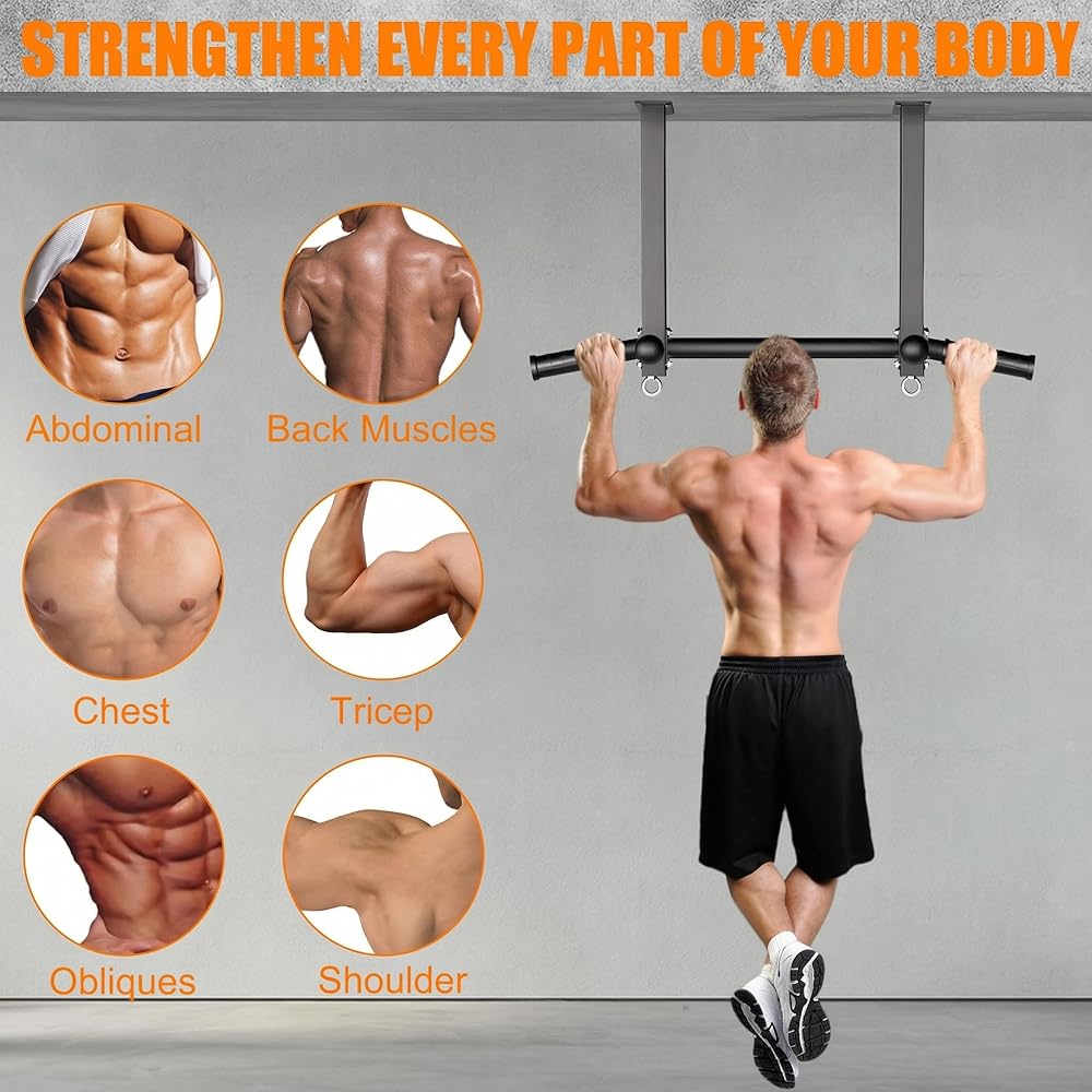 Ceiling mounted pull up bar Want to create your own fitness space at home and achieve efficient workouts with ease? This ceiling-mounted pull-up bar is the perfect choice for you. In terms of materials and performance, it is meticulously crafted using industrial-grade materials, offering excellent load-bearing capacity and can easily support up to 600 pounds, making it suitable for workouts of various intensities. Its surface features an advanced black powder coating process, effectively resisting wear and corrosion from daily use, ensuring the product can be used reliably and stably over the long term, providing a solid foundation for your fitness journey. In terms of exercise experience, this pull up bar is thoughtfully equipped with spherical grips and anti-slip grips, offering you a variety of grip options. Whether you prefer a wide grip, narrow grip, or other customised grip styles, it can accommodate all your needs. This versatile design not only enhances the diversity and fun of your workouts but also allows you to find the most suitable grip style for yourself, thereby improving workout effectiveness and helping you achieve better results on your fitness journey. Additionally, our garage pull up bar innovatively features two anchor points, which can be used to install various additional training accessories such as TRX suspension straps, resistance bands, sandbags, yoga straps, and power ropes. By combining these accessories flexibly, you can engage in a wide range of fitness training programmes, fully meeting diverse fitness needs, making every workout fresh and challenging, and continuously pushing your limits. In terms of installation, this ceiling-mounted pull-up bar offers exceptional flexibility, making it suitable for various indoor spaces. Whether it's a cosy home, a spacious garage, or a relatively secluded basement, installation can be completed with ease. With it, you can easily create your own personal fitness corner, integrating fitness into your daily life and enjoying the joy and benefits of exercise anytime, anywhere. Additionally, HWOOUSA is committed to providing customers with high-quality fitness equipment. If you encounter any issues while using this pull-up bar, please feel free to contact us at any time. Our professional team will assist you with the utmost enthusiasm and professionalism, ensuring you have a pleasant and smooth user experience. Choose this ceiling-mounted pull-up bar to embark on your new journey of home fitness, and let health and vitality always be by your side.