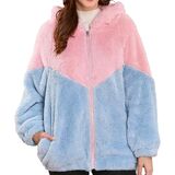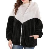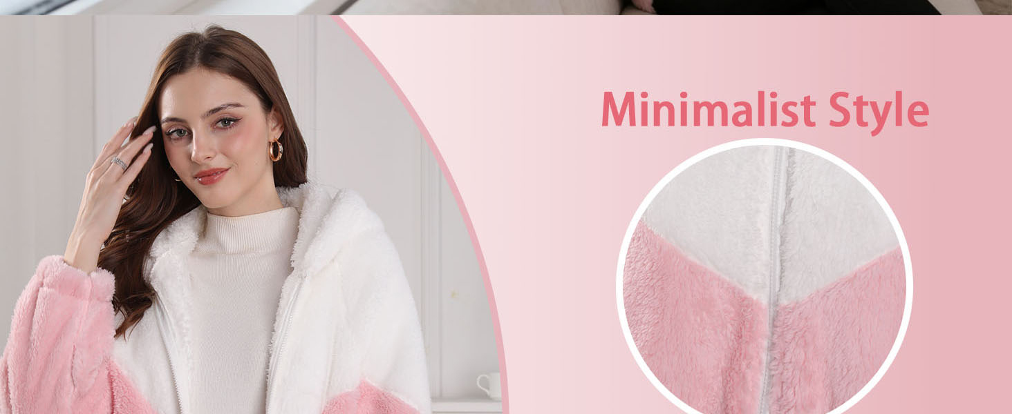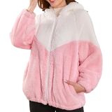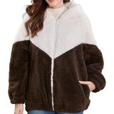 DESIGN FEATURES: Patchwork zipper hooded sweatshirt with two-color contrasting design, roomy pockets, and sleeve drawstring for style and functionality