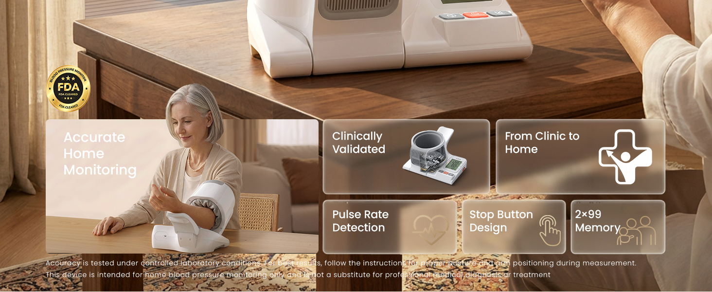 Accuracy You Can Trust: FDA-cleared for home blood pressure monitoring. Pressure accuracy: ±3 mmHg (per product specification) for consistent daily tracking. For best results, measure with proper posture and keep your arm supported at heart level.