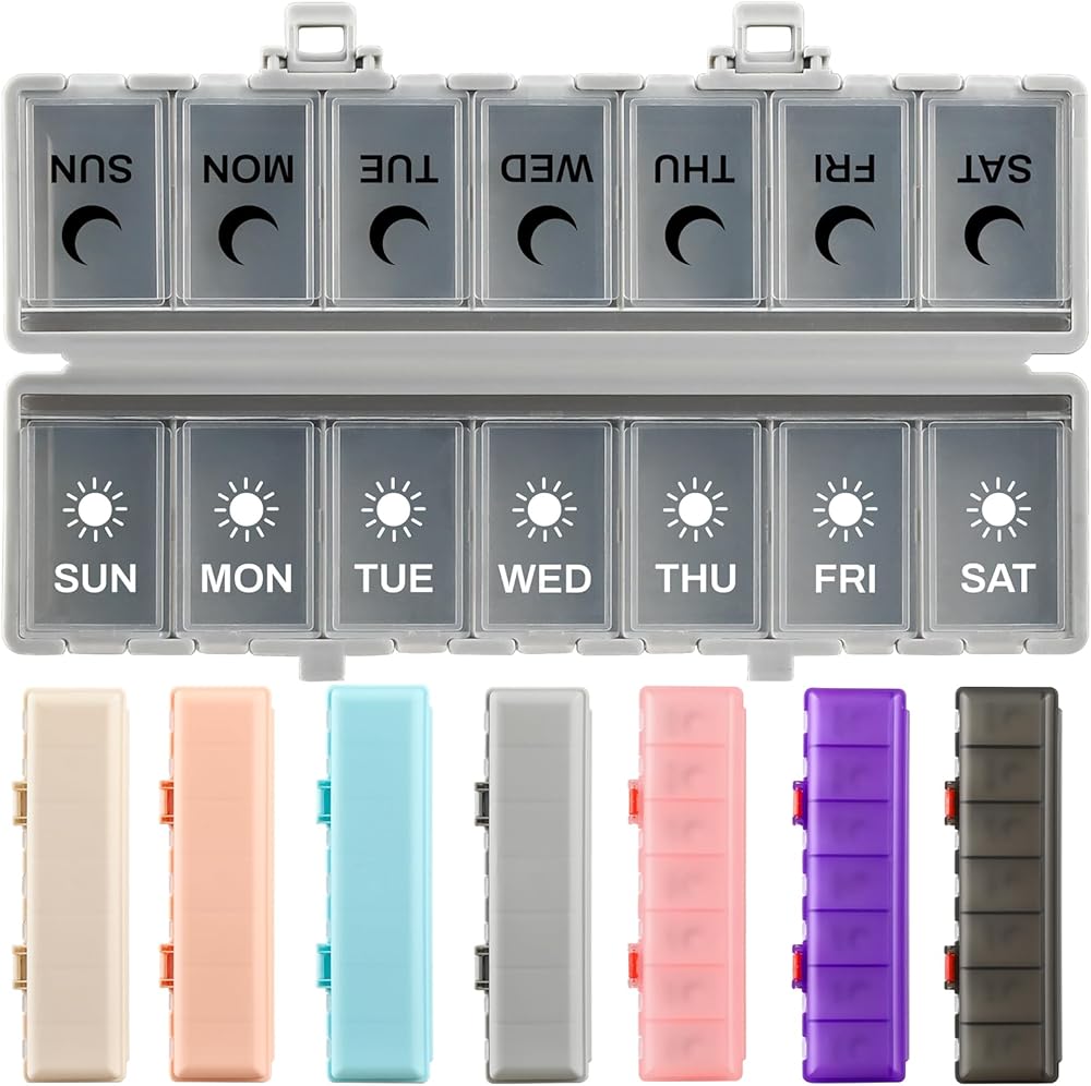 UPGRADED JUST-RIGHT SIZE: Made from BPA-free, food-safe plastic, this 2 times a day weekly pill organizer is designed for everyday use at home, in the office, or while traveling. With updated dimensions (Folded: 7.6"L × 2.1"W × 1.74"H; Unfolded: 7.6"L × 4.1"W × 0.87"H), this cute daily pill organizer fits easily into bags, luggage and drawers while offering ample capacity for vitamins, supplements, fish oil and medications of various sizes.