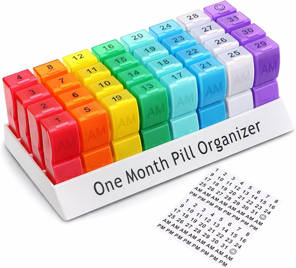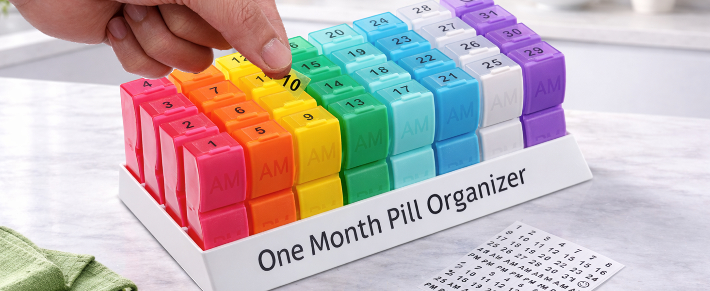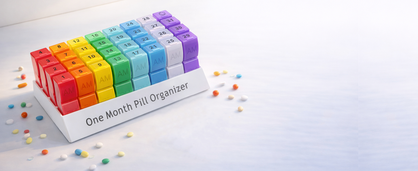 Plan & Organize an Entire Month in Advance - This monthly pill organizer features 32 colorful, translucent compartments to help you organize medication up to 31 days ahead. Clearly separate AM & PM doses and stay consistent with your routine—reducing missed or double doses.