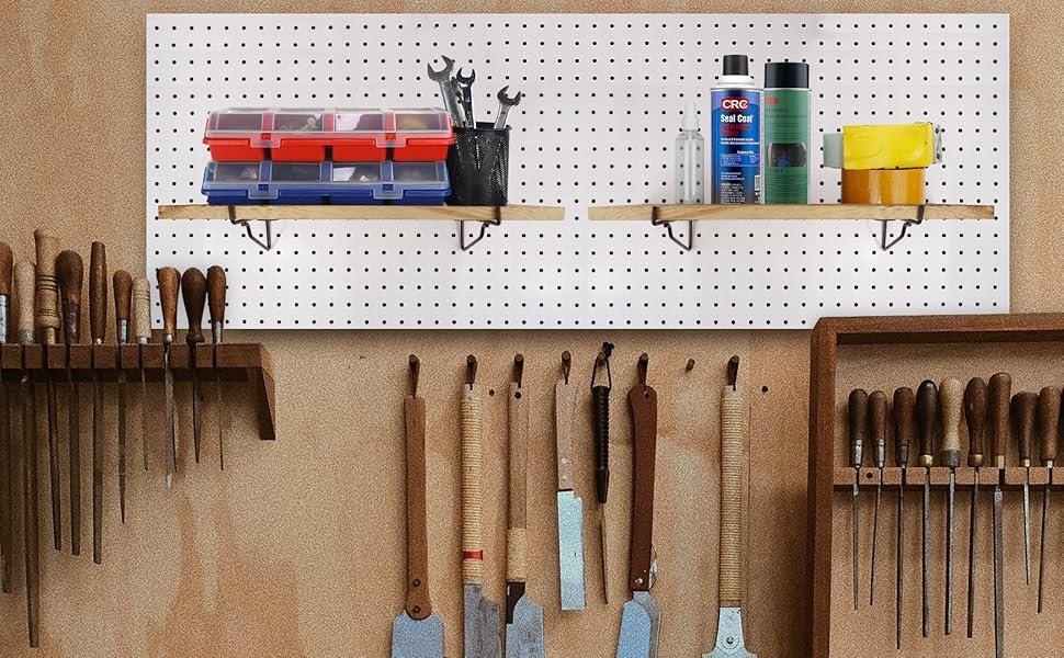 Flexible Organizer: This pegboard shelving set is convenient to arrange and rearrange. So you can freely create a decorative, practical, and changeable organized wall space. Clear the top of your desk or drawers, and keep things within eye reach and easily accessible.