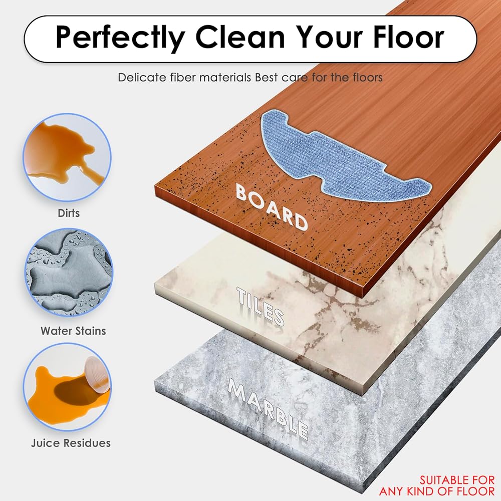 【Mop Pads】2 mop pads included. It is perfectly compatible with M330/ M330 Pro robot vacuum. Washable, reusable, durable. Our high-adhesion mop pads are highly absorbent and work wonders at mopping up dirt and water stains. Ultra-thick mop, super-strong water lock, more even water output, 99.99% removal of stubborn stains, including ketchup, floating ash, fruit juice, soy sauce, shoe prints, coffee stains, carpet hair, rice, milk, etc.