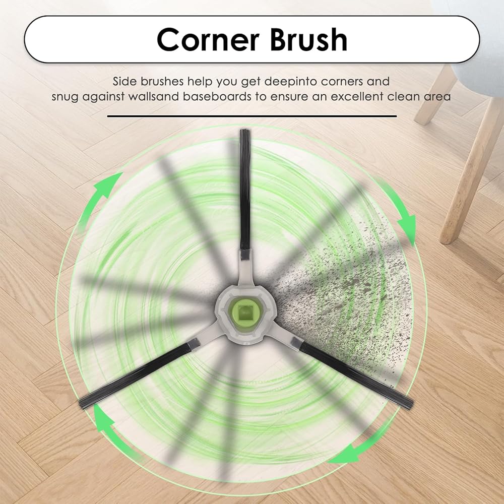 【Side Brush】8 side brushes included. Our M330/ M330 Pro side brush's innovative structural design effectively prevents hair and other garbage from being entangled and enhances the ability to collect garbage. It can get deep in to corners and snug against walls and baseboard to ensure an excellent clean area. The bristles on our side brushes are made of premium nylon, which are more durable and clean better.