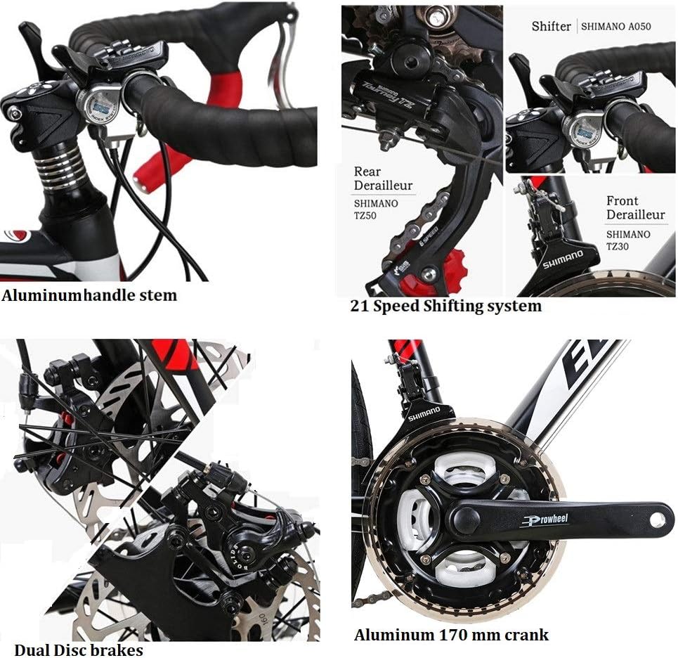 49 and 54 cm frame: Eurobike XC550 road bike with a high quality carbon steel frame for durability, 21-speed shifting and dual disc brake are easily enough for your daily commute and adventurous riding.