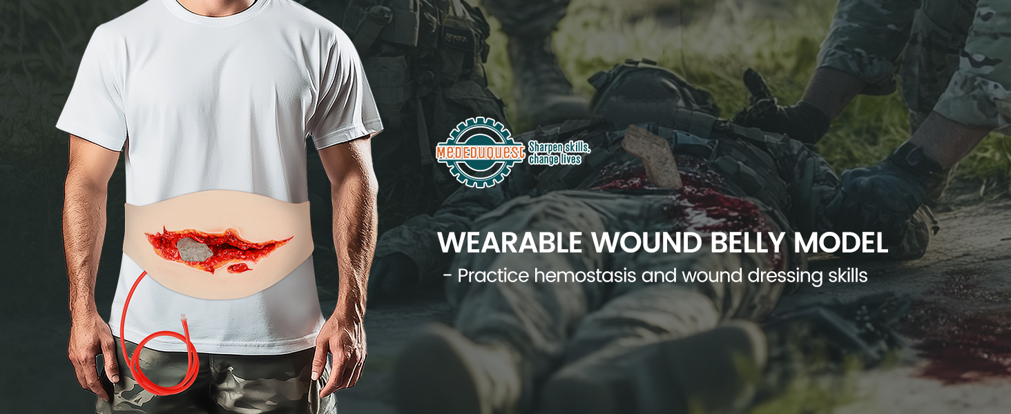 Adjustable Wearable Design: The wound packing trainer features an adjustable strap, fitting all body sizes. Easily worn on the abdomen, it provides hands-on training for wound care, hemostasis, and bandaging
