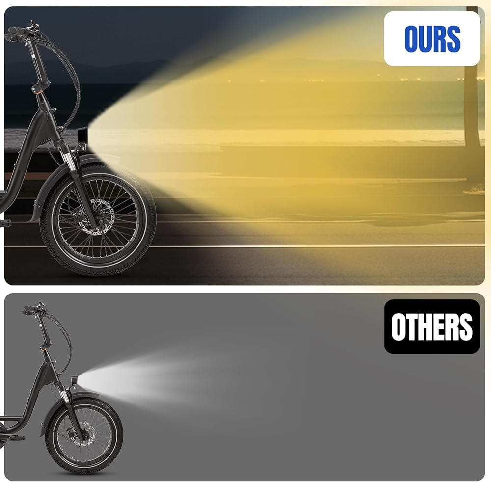 【Crafted with Precision】Our ebike headlight features an aluminum alloy shell and a PC lens, stainless steel bracket, ensuring superior shock resistance, waterproofing with an IP68 rating, and efficient heat dissipation. Designed to withstand all weather conditions, guaranteeing durability and reliable performance