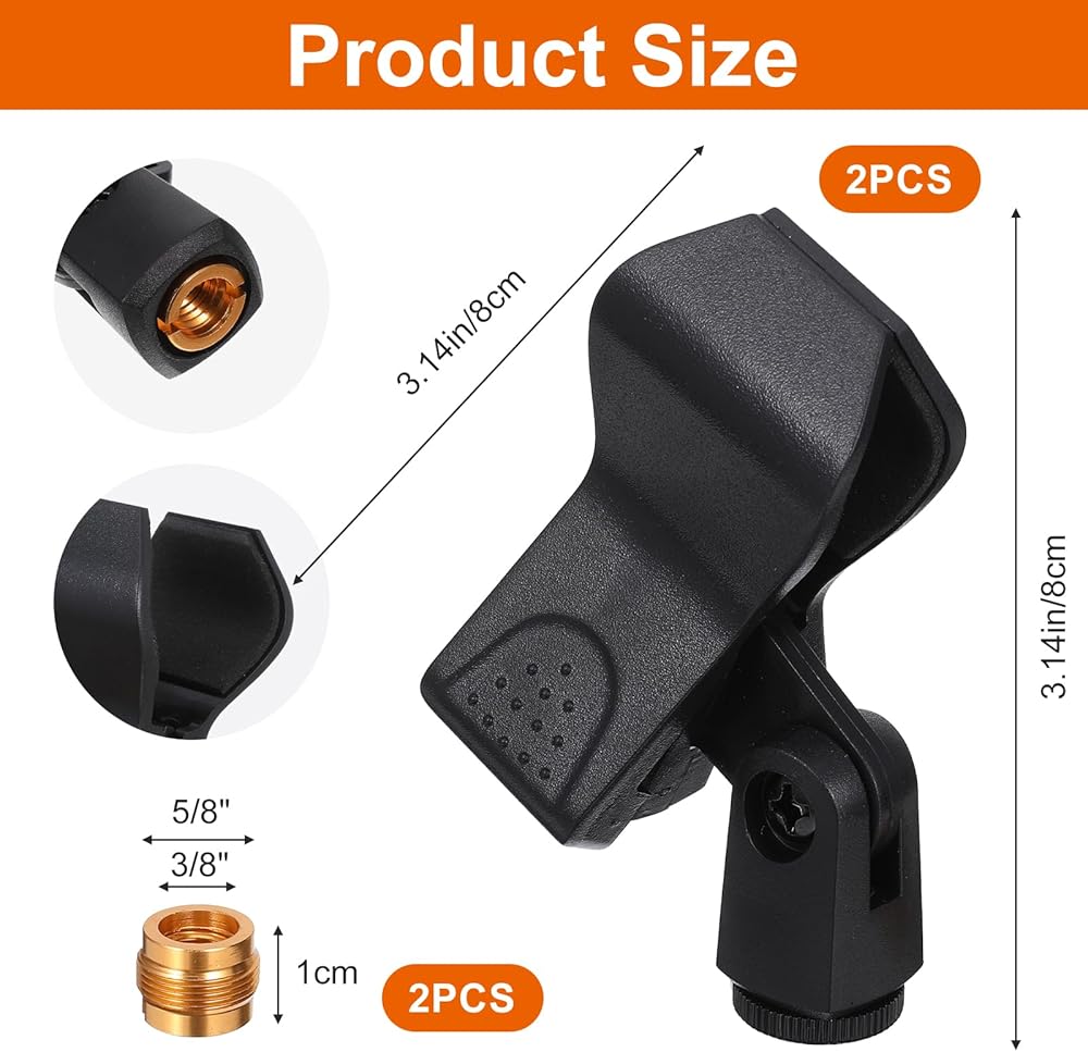 2 Pcs Universal Microphone Clip Adjustable Microphone Holder for Mic Stand Wireless Mic Holder with 5/8" Male to 3/8" Female Screw Adapter for Handheld Microphones