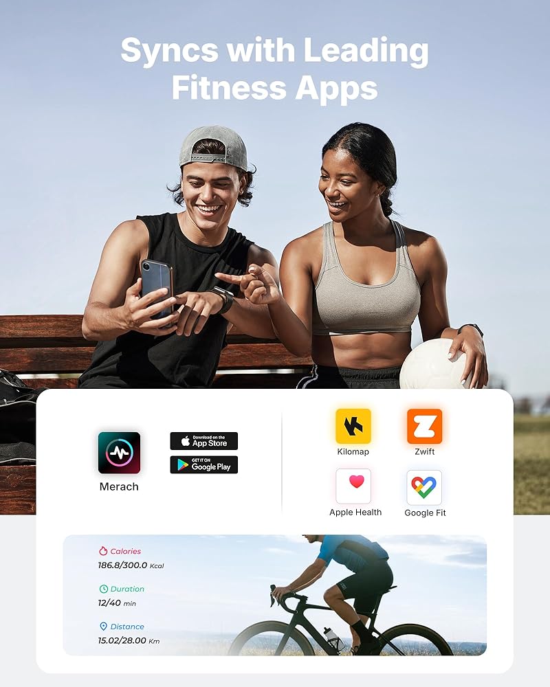 Merach Self-Developed APP: Track real-time stats via the Merach, and sync data effortlessly with Google Fit and Apple Health. Ride with Kinomap and Zwift for immersive training. Smarter fitness, smoother rides, and next-level motivation. Every pedal push gets you closer to your goals.