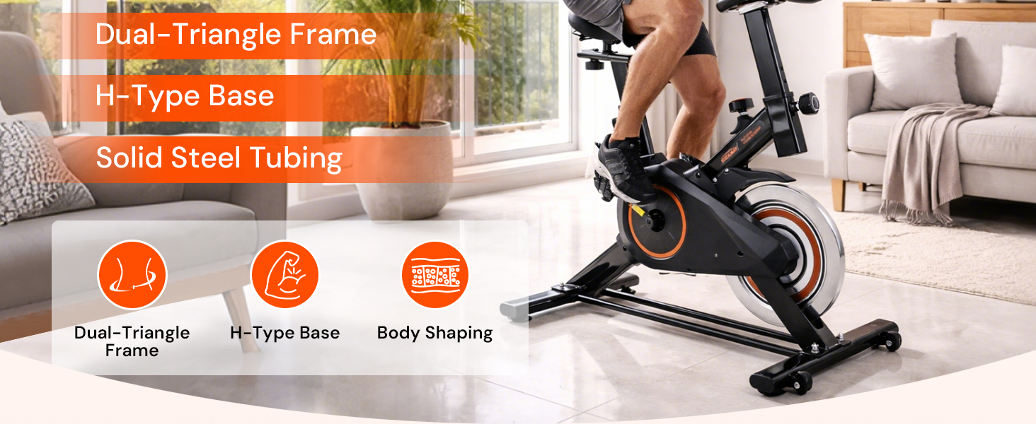 Small but Mighty:Cardio Fitness Bike Crafted with thickened stainless steel, this bike features an extended and widened base plus a triangular structure for exceptional durability and stability. It ensures a safe and reliable workout even during high-intensity training, supporting up to 330 lbs. The adjustable cage pedals keep your feet securely in place, preventing slip-offs during fast rides.