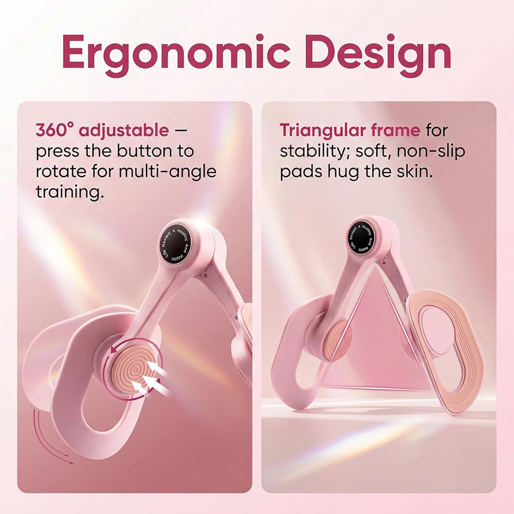 Build a stronger, more confident lower body with this versatile Pelvic Floor & Inner Thigh Trainer. The upgraded design pairs a spring core with an elastic band to create a smooth dual-action toning motion—press to squeeze, then enjoy a steady, quiet auto-return. An adjustable resistance dial lets you increase or decrease challenge on the fly, making it perfect for beginners through seasoned fitness lovers. The ergonomic triangle shell and soft anti-slip pads help the trainer sit comfortably and securely between your thighs while you target the pelvic floor, hips, glutes, inner thighs and even the arms or chest for accessory moves. At under a minute to set up, it's a convenient way to add focused activation to any routine—morning, office break, or evening wind-down. Whether you're aiming to tone the lower body, improve posture support, or add low-impact accessory work to leg day, this compact hip trainer makes quick, effective sessions easy anywhere.