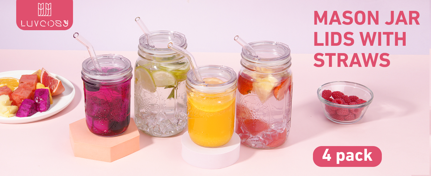 Glass Straw Included: You can get both lids and straws. LUVCOSY Mason Jar Lids with Straws are specifically designed for enjoying drinks with abundant ingredients like pulp and boba, providing a more complete beverage experience.