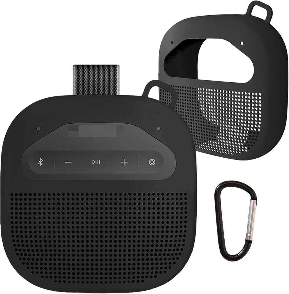 Silicone Case Cover For Bose New SoundLink Micro Portable Bluetooth Speaker (2nd Gen), High-Quality Shockproof Cover with Carabiner, Anti-Slip Dustproof Protective Sleeve (Black)