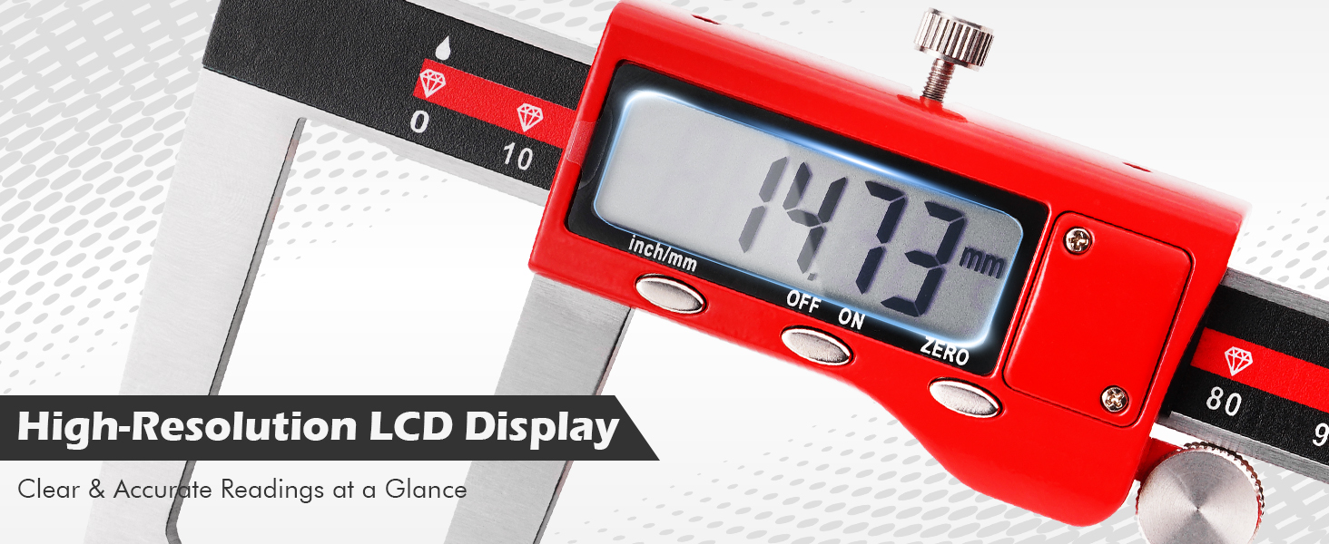 Large Easy-Read Digital Display: Bright LCD screen with mm / inch conversion makes readings clear at a glance. No guessing, no squinting in the garage.