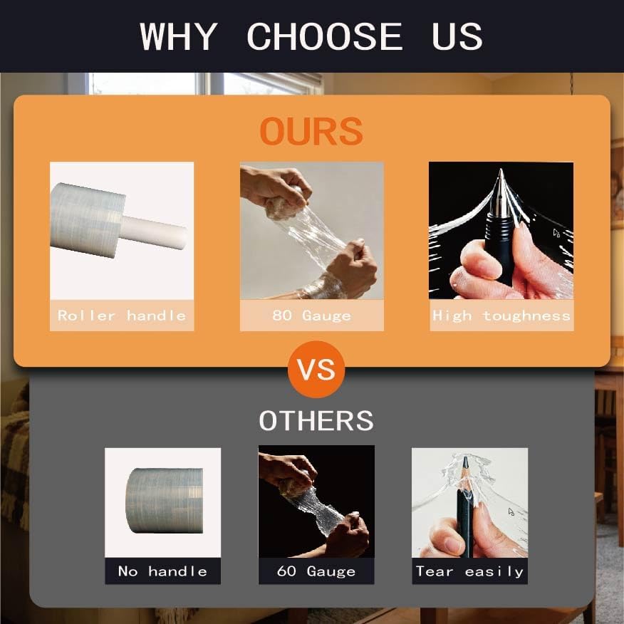 5 INCH MINI STRETCH WRAP WITH HANDLE – Hand held stretch film with extended handle for fast wrapping, no slipping, no sticking to hands, ideal for moving, storage, and shipping.
