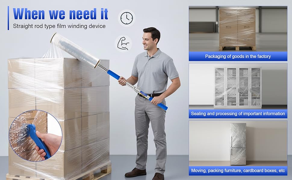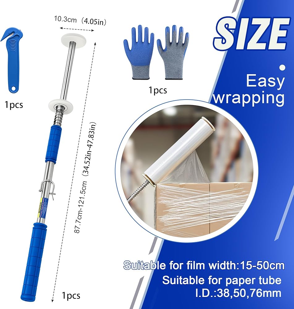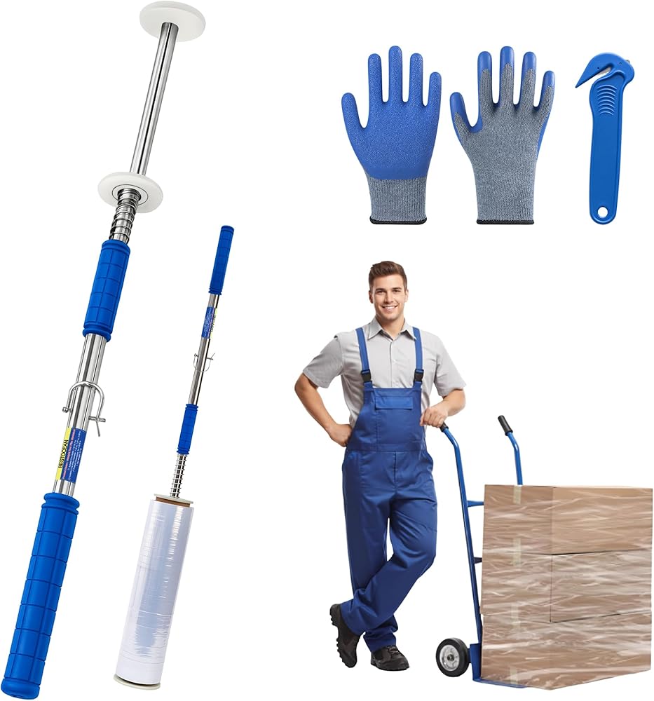 ✅ 3X FASTER PALLET WRAPPING WITH COMPLETE KIT – This heavy-duty stretch film dispenser includes a roller, gloves, and cut-off knife. Ideal for warehouse and logistics teams wrapping full pallets quickly. No more struggling with manual pallet wrap – glide through high and low areas of pallets seamlessly. Material: Lightweight metal frame with ergonomic handles.
