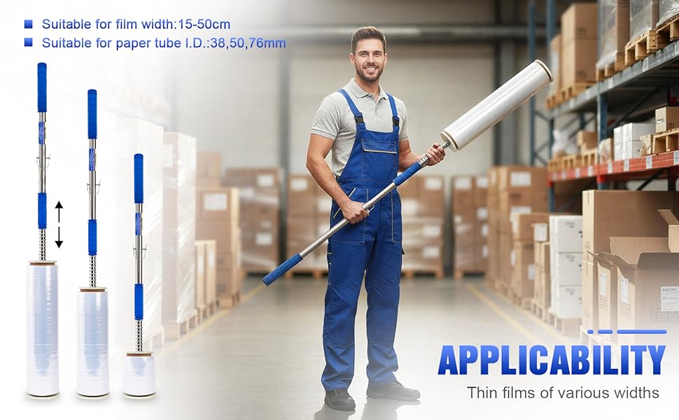 Long Handle Pallet Stretch Wrap Dispenser, Stretch Wrap Dispenser for Film Width 12-20 inch, Rolls 1.5" to 3" Diamater, Stretch Wrap with Handles for Warehouse, Logistics, Factory Shipping & Packaging