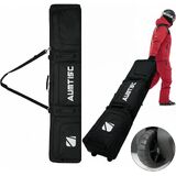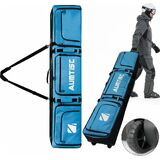 Our Roller Snowboard Bag (165×32×22cm, adjustable to 175cm) fits most skis/snowboards, with external secure straps and an interior double-strap system for stable storage; crafted from 600D polyester with PVC & thick foam lining, it has a lockable two-way zipper and ID slot. It offers 3 external compartments, an internal ski pole pocket, and a mesh pocket for organized storage, plus a 5-in-1 carry system (backpack, crossbody, rolling, dual front/single side handles) for flexible mobility. Built with reinforced panels and smooth wheels, it is ideal for airports, resorts, and rough roads, it combines security with effortless mobility.