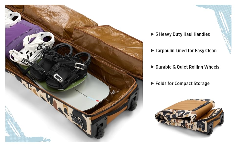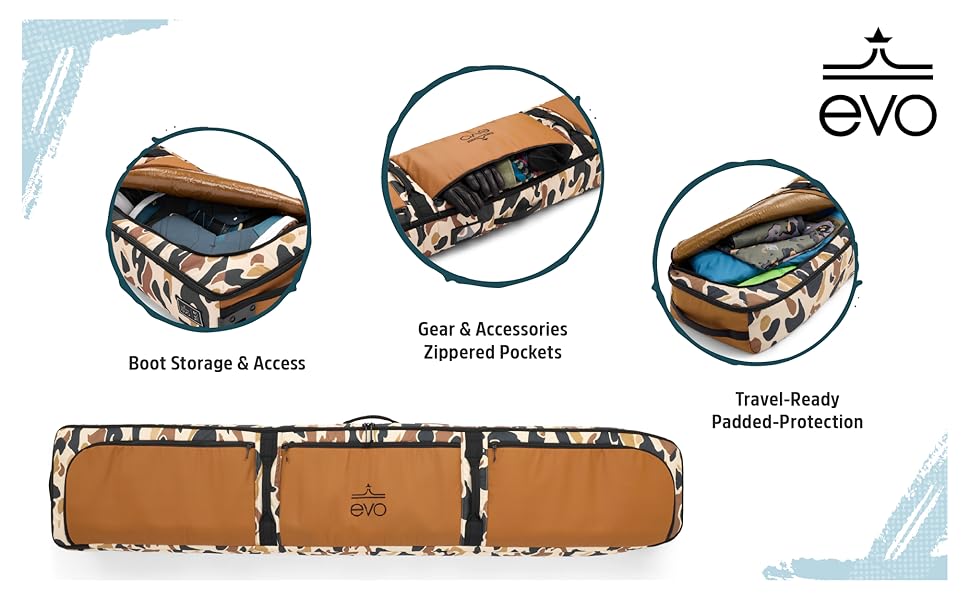 evo Deluxe Snowboard Roller Bag - TSA Compliant – Pack Bindings and Gear – Designed for Snowboards