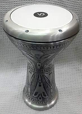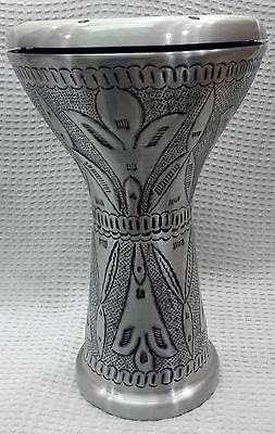 Egyptian Darbuka Drum Doumbek Tombak, Silver, 22cm (8.75") Head, 41cm Height, Aluminum Body, Synthetic Skin, Includes Soft Bag and Tuning Key