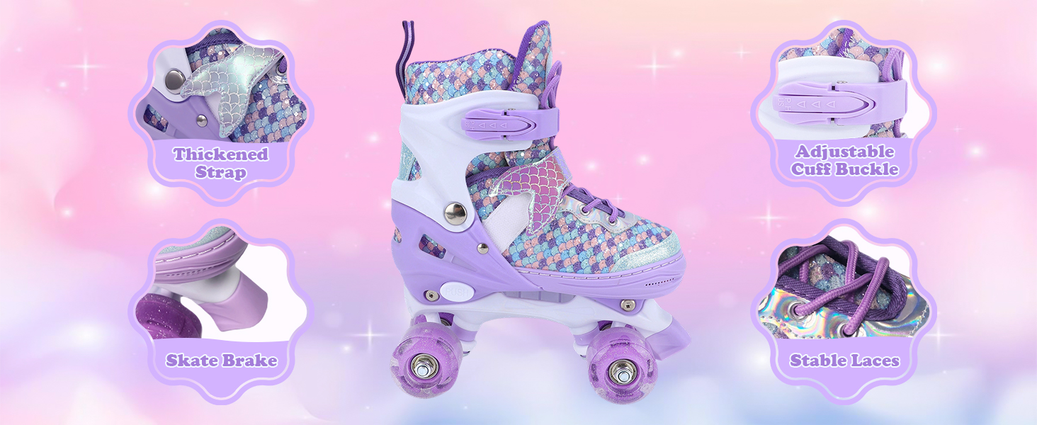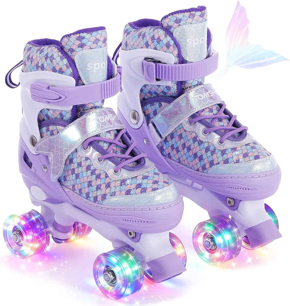 This 4-size adjustable luminous roller skate, equipped with flashing and LED luminous wheels, can shine both day and night. The unique shoe surface design, bright colors, allows children to exercise their bodies while playing and enjoy the fun of sports.