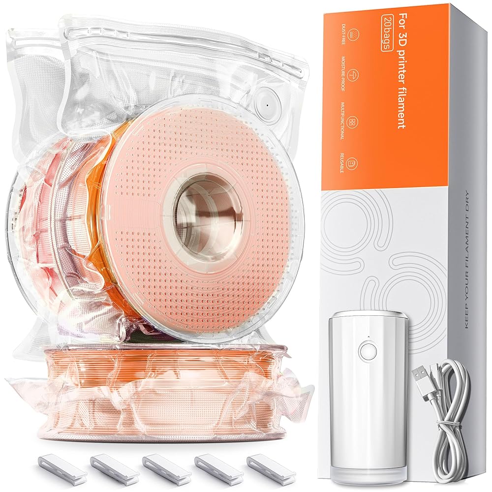 Complete moisture protection kit : This filament storage bags kit includes 30 reusable large vacuum bags plus 30 packs of 5g desiccants,sealing clips, which is useful for filament care, enabling immediate sealing after drying and protecting against moisture and dust. Ideal for everyday filament storage.