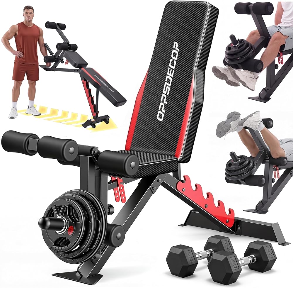 OPPSDECOR 1200LBS Workout Bench with Leg Extension/Leg Curl, Adjustable Weight Bench for Home Gym, Heavy Duty Workout Bench for Full Body Workouts, Incline/Flat Bench Press Set for Strength Training