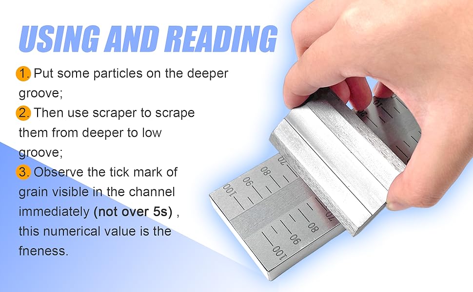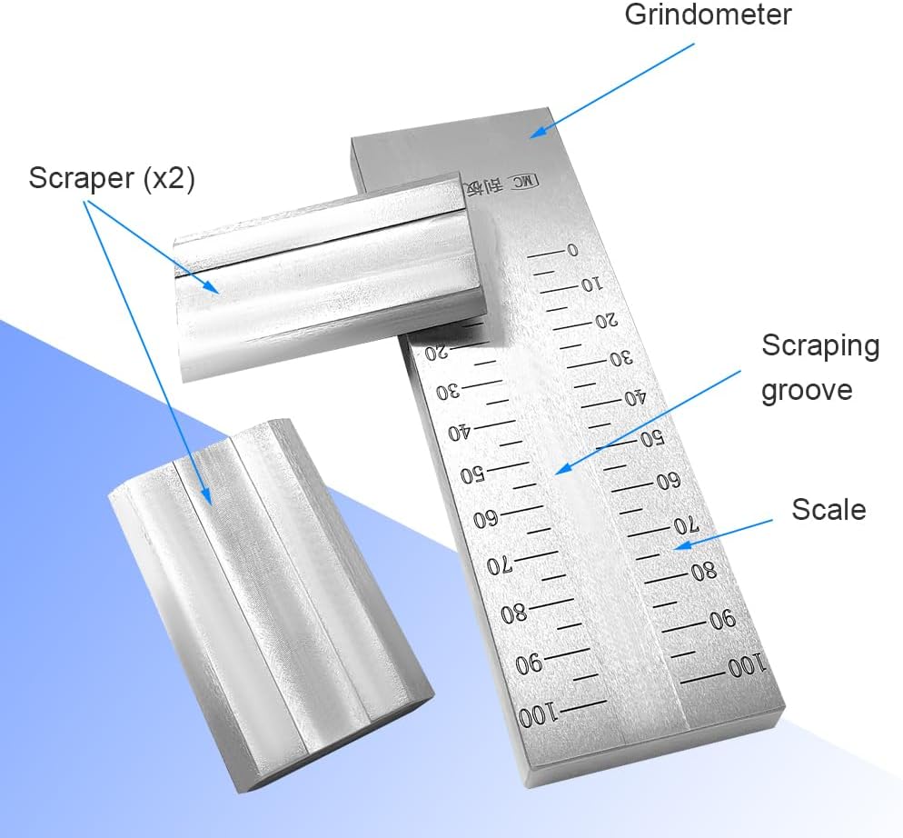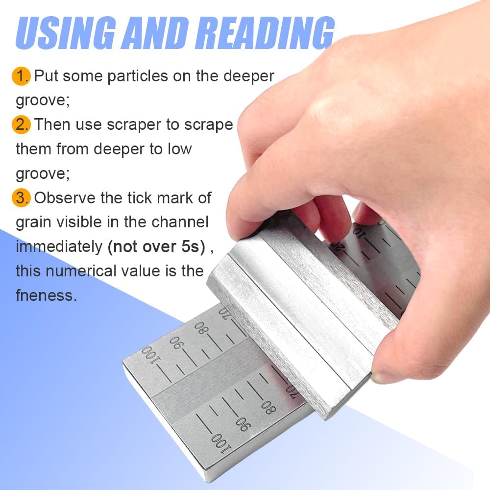 Easy to Use with Complete Accessories Simply place your sample in the deep end and scrape with the included spatula. Read the fineness value instantly (within 5 seconds) where particles become visible. This kit includes everything you need: one Stainless Steel Grindometer and two professional scrapers, all housed in a protective storage case.
