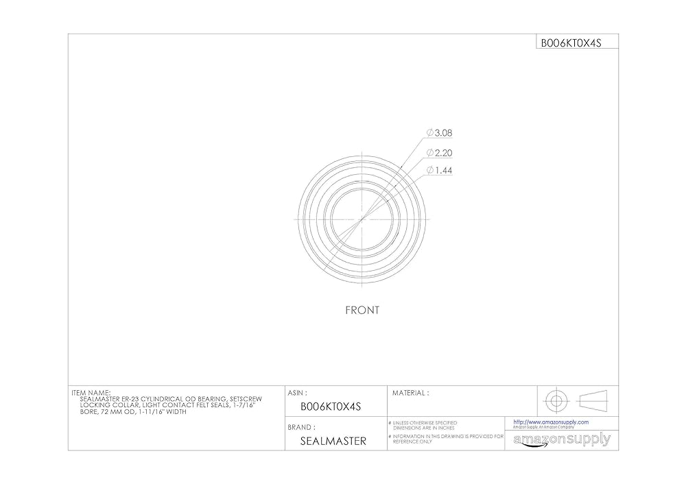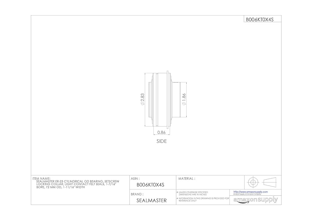 Insert Bearing, Ball Material Alloy Steel, Bearing Industry Number ER-23, Bearing Insert Type Radial/Deep Groove Ball, Bearing Insert Shape Cylindrical, Bore Diameter 1 7/16 in, Cage Material Brass, Closure Double Sealed, For Environment Highly Dusty and Dirty, Inner Ring Outside Diameter 1.859 in, Lubricant Material NLGI #2 Equivalent, Maximum Temperature 220 Degrees F, Minimum Temperature -20 Degrees F, Outer Ring Width 0.938 in, Outside Diameter 2 53/64 in, Ring Material Alloy Steel