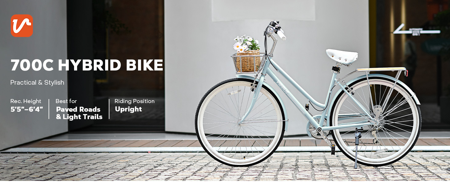 28 inch Womens Hybrid Bike: This hybrid bike combines stylish look with a 7-speed derailleur, allowing riders from 5′5″ to 6′4″ to enjoy the perfect sporty ride whether you're commuting, running errands, beach cruising, or exercising