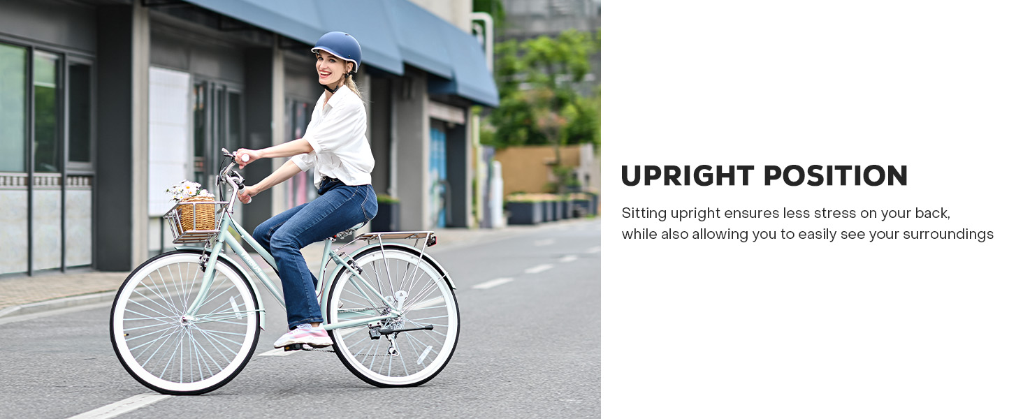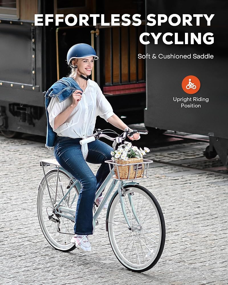 Lasting Riding Comfort: The swept-back handlebar and shock-absorbing cushioned saddle of this womens bike keep you in an upright riding position for less strain on your back, ensuring an ergonomic ride on pavement, gravel, and everything in between