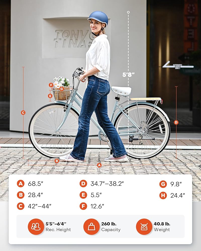 Durable Frame: The user-friendly step-through frame of this adult bike is easy to hop on or off for riders of all ages and abilities, while its steel build ensures durability and supports weights of up to 260 lb