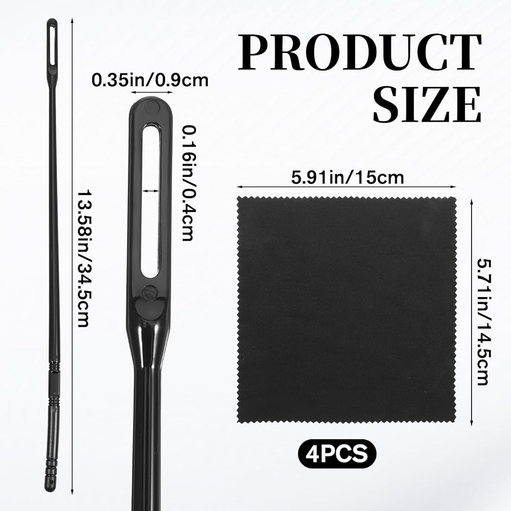 【Proper Size】Designed with universal fit in mind, the flute stick measures 13.6 inches (34.5 cm) in length, and each flute cleaning swab is 5.9 x 5.71 inches (15 x 14.5 cm). This proper size makes the kit suitable for cleaning and maintaining most standard flutes and piccolos. The rod can also double as a tool for gently adjusting the position of flute reflectors, adding to its utility.
