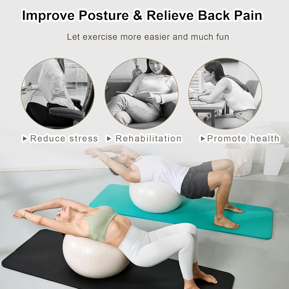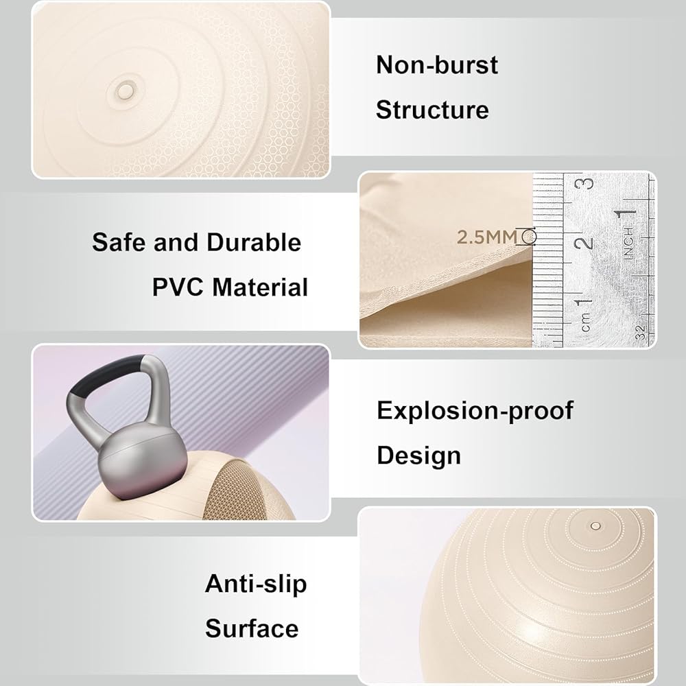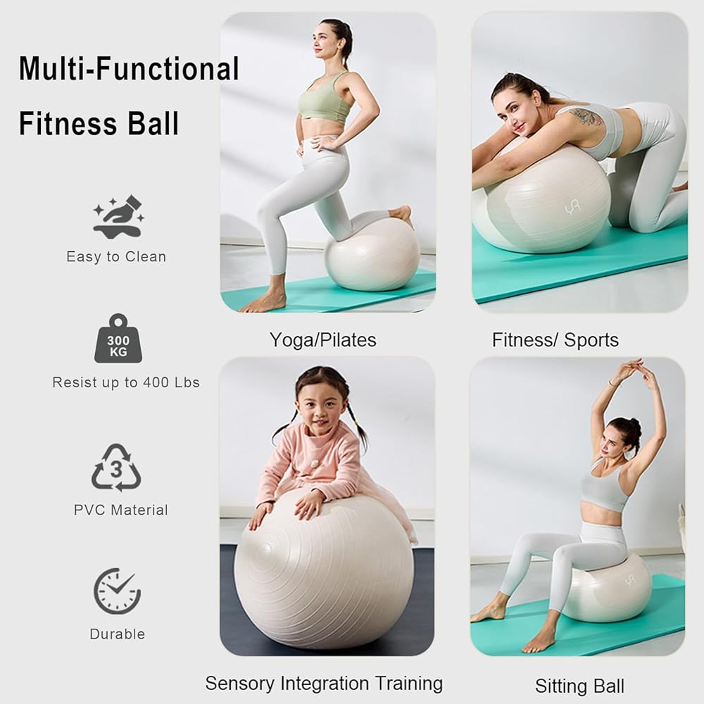 The YR Exercise Ball 65cm is a versatile fitness tool designed to enhance your stability training, pregnancy exercises, general workouts, and physical therapy routines. This 65cm diameter ball provides an ideal size for users between 5'5" and 5'11" tall, offering optimal support for a wide range of exercises. The clean white finish fits seamlessly into any home gym, studio, or therapy space. Whether you're strengthening your core, improving balance, practicing prenatal exercises, or recovering from injury under professional guidance, this exercise ball delivers reliable performance. Use it as a workout tool for crunches, planks, and stretching routines, or as an active sitting solution to engage your core throughout the day. The 65cm size strikes the perfect balance between stability and challenge, making it suitable for both beginners and experienced fitness enthusiasts. This recreation ball supports various training methods and can help improve posture, flexibility, and overall body strength when incorporated into your regular fitness regimen.