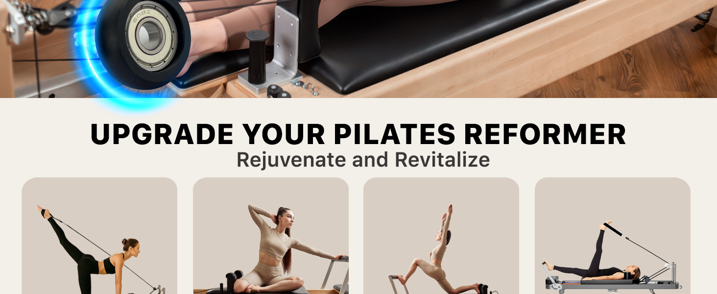 Solve the problems:If there is noise or poor sliding in the pilates reformer,we need to replace the wheel roller component of the pilates reformer Seat;Upgrade wheel rollers are more durable,quieter,and smoother to meet high-intensity exercise needs