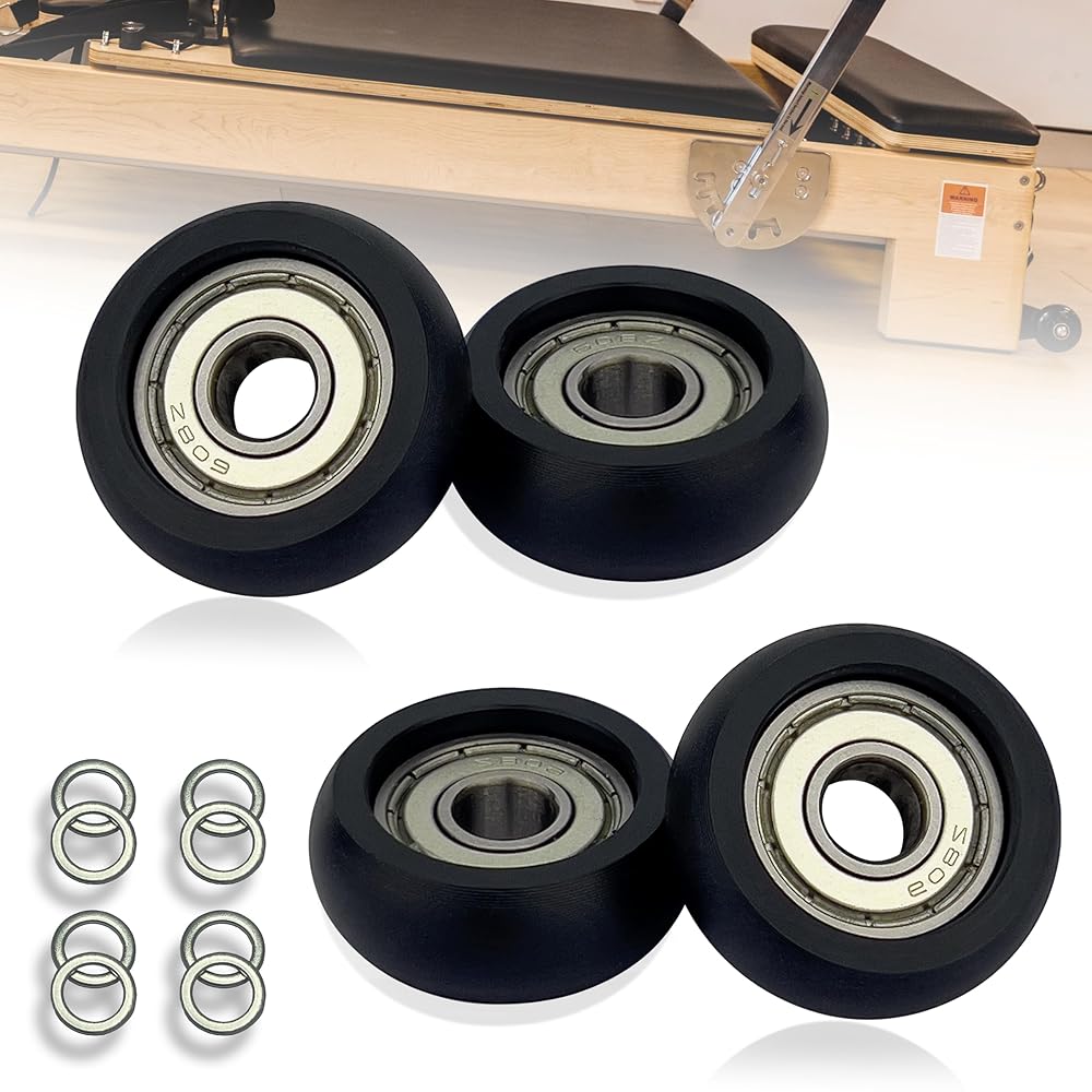 High quality:Aero pilates replacement parts,the kit includes 4 wheels rollers and some washers;The wheels rollers is composed of nylon material and precision steel bearings;The diameter is 1.26 in, and the bearing bore is 5/16 in