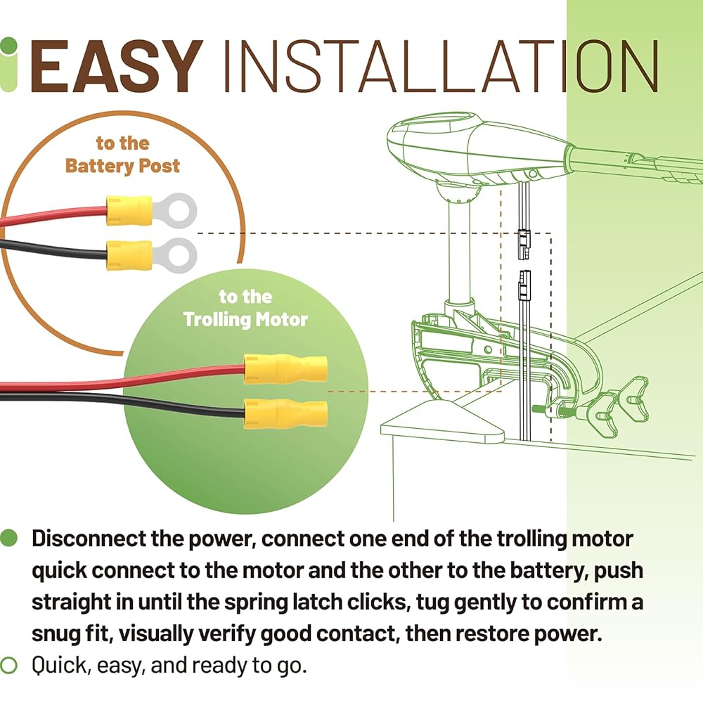 16 AWG Marine Battery Quick Connect Kit, 12V–24V Low-Current Connector for Boat Electronics, Compatible with Attwood, Minn Kota, Newport, MotorGuide (Not for Trolling Motors)