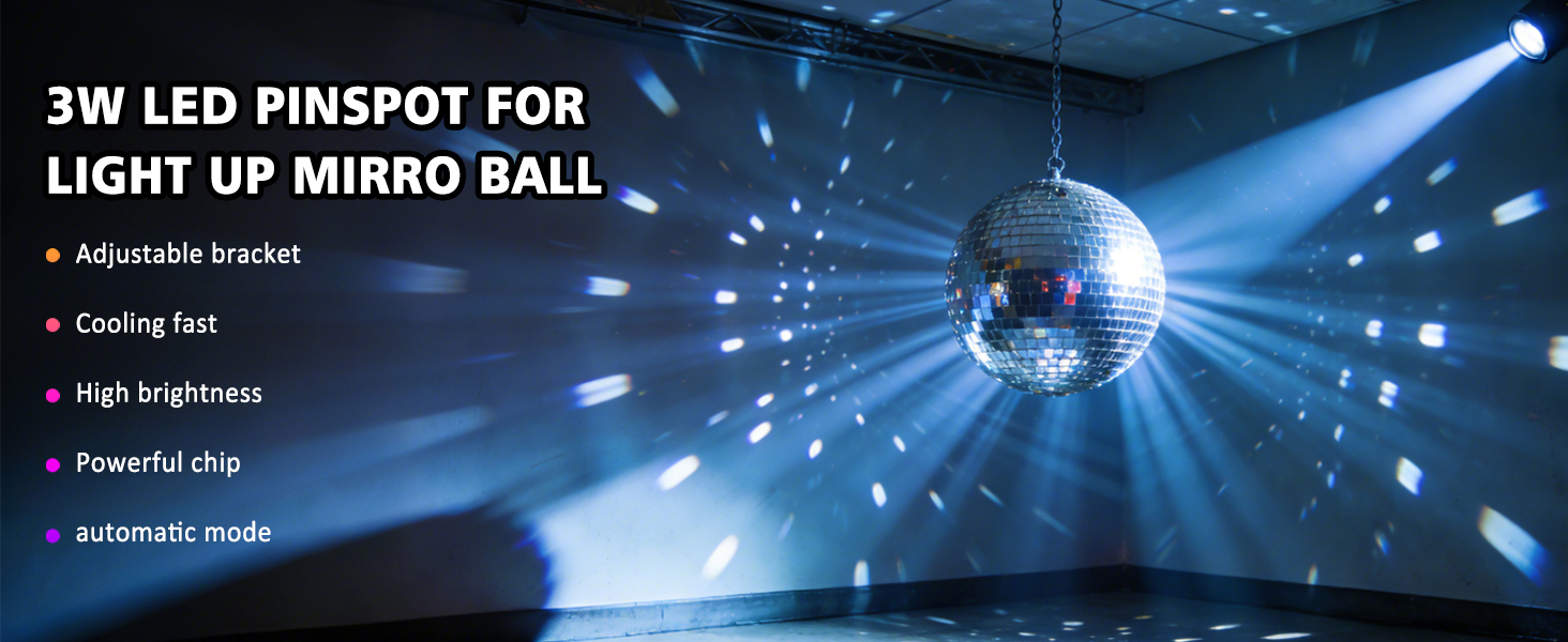 2. [Stable and continuous beam] Stable and continuous beam. Mirror ball light source is stable, stable output current, low noise, low power consumption. When you need to hold a family party, it can over enough to give you a good lighting effect, so it is very suitable for indoor use. If you need to use it outdoors, 12W may be more suitable for you.