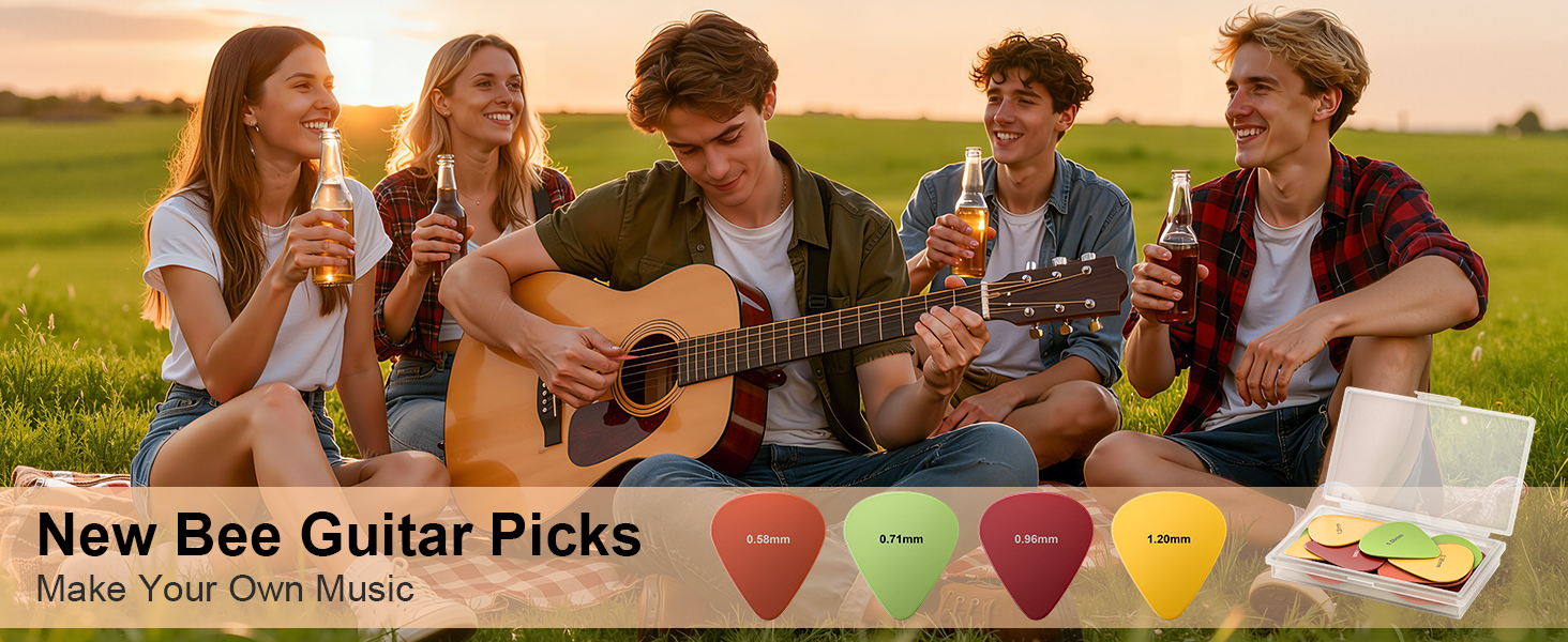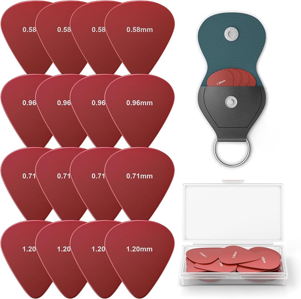 【Master Every Sound with 4 Pro Thicknesses】 This 16-piece set includes 4 guitar picks each of four professional thicknesses: Thin 0.58mm, Medium 0.71mm, Heavy 0.96mm, and Extra Heavy 1.2mm. Mix and match to discover your signature sound—whether you're a beginner finding your groove or a pro refining your technique