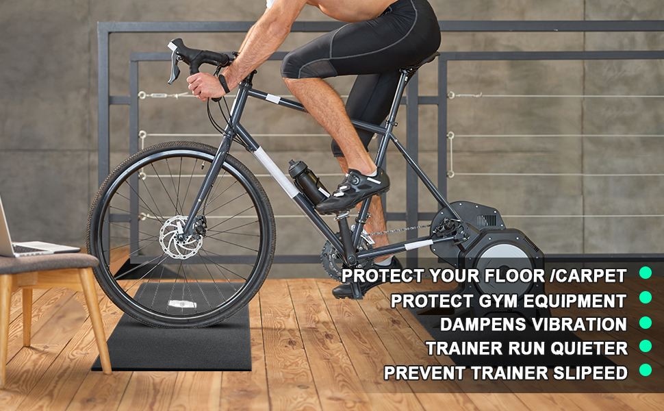 DURABILITY AND QUALITY: Our bike trainer mat are made of premium PVC, compact structure with good tear-resistant and more durable.