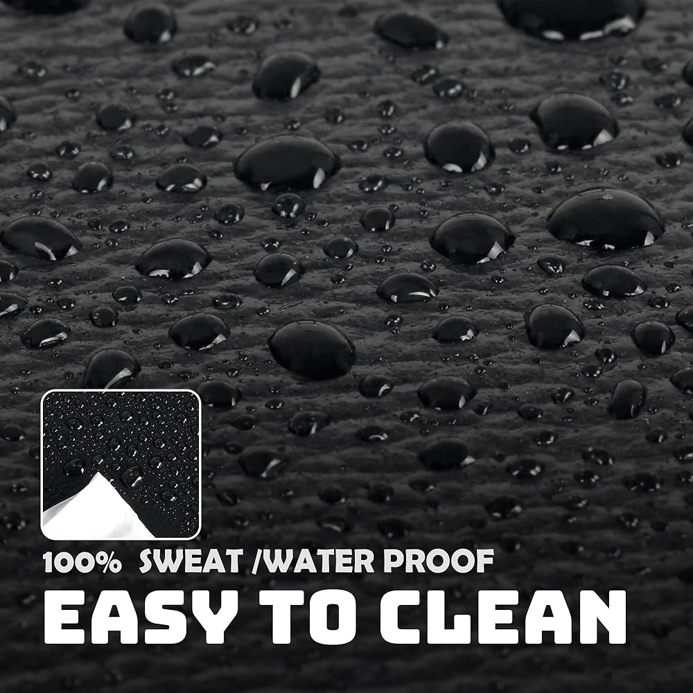 SWEATPROOF & EASILY CLEANED: The bike mat surfaces are treated with a calendering composite process to make them it fully sealed, 100% waterproof and sweatproof. It's very easy to clean, just wipe with a wet towel.