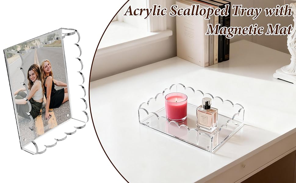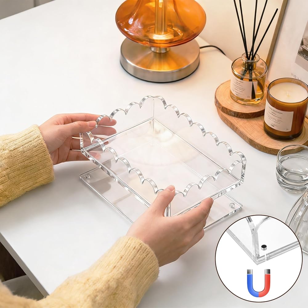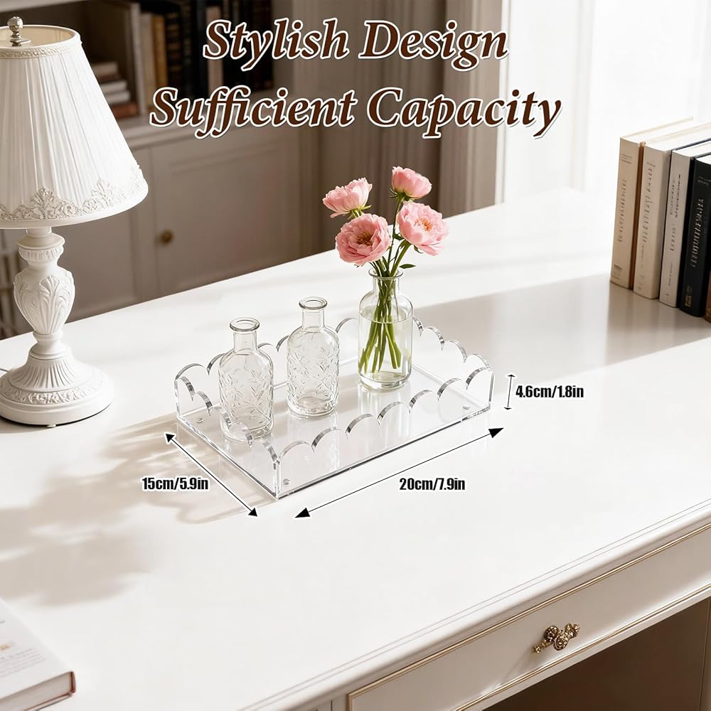 Scalloped Edge Home Decor Accent: Add a touch of soft elegance to any room with the beautifully crafted scalloped edge acrylic tray; this chic decorative tray design complements farmhouse, modern, and transitional decor styles, making it a versatile home decor accent for coffee tables, bookshelves, and nightstands