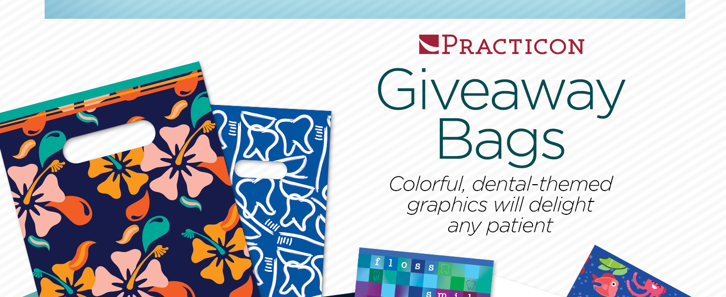 - Send your patients home with style! Practicon Dental Giveaway Bags ensure your patients leave with everything they need for home care success.