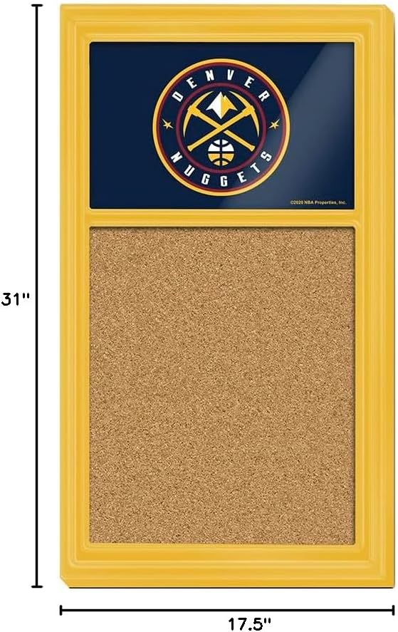 The Denver Nuggets Cork Note Board is perfect for keeping notes and pinning messages or photos in any fan cave, game room, office or dorm. Our note board wall sign is injection molded with it's high-resolution digitally printed face, high gloss finish, and corkboard surface, it will provide hours of use while adding a finishing touch to any room. Mounting hardware included. This is an officially licensed product of the NBA and made in the USA.