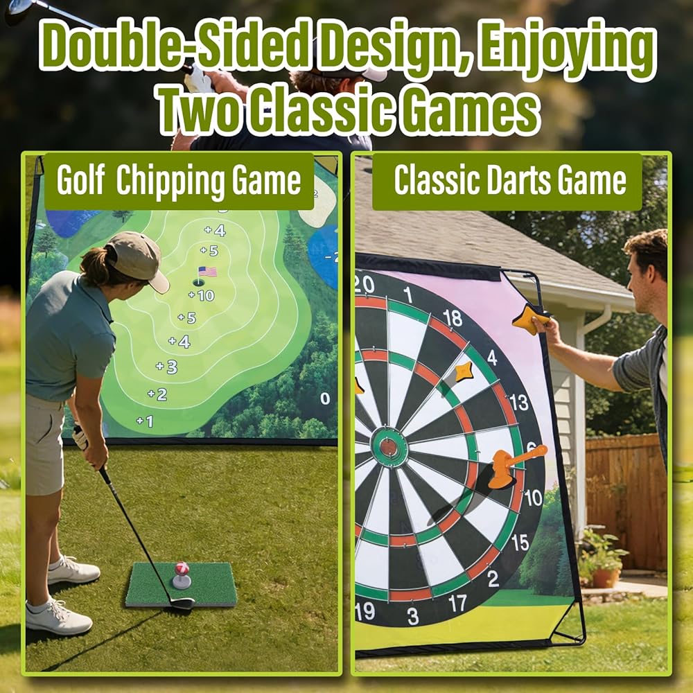 Golf Chipping Game with Hitting Mat, 70"x70" Double-Sided Mat with Classic Darts Game, Portable Outdoor/Indoor Practice Set for Adults, Comprehensive Accessories for Junior Golfer