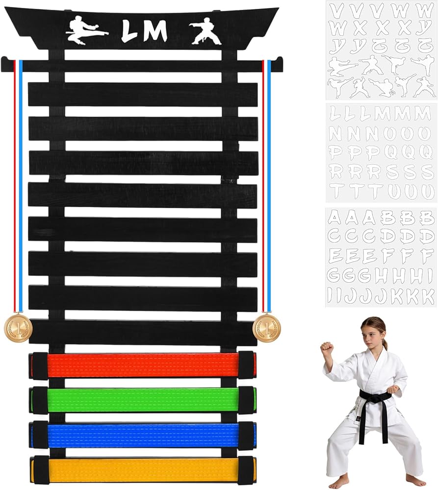 Personalized & Motivational Display:Includes martial arts-themed letter stickers so you can customize your belt rack with your name, dojo, or inspirational message. Turn your progress into a motivational centerpiece that celebrates dedication and growth.