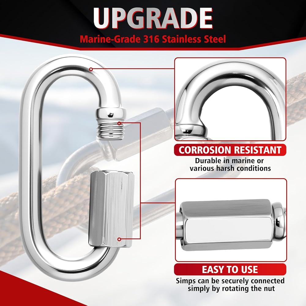 The 316 stainless steel material in these chain links offers enhanced rust and corrosion resistance, making them a dependable choice for outdoor, marine, and damp environments without compromising strength or appearance.