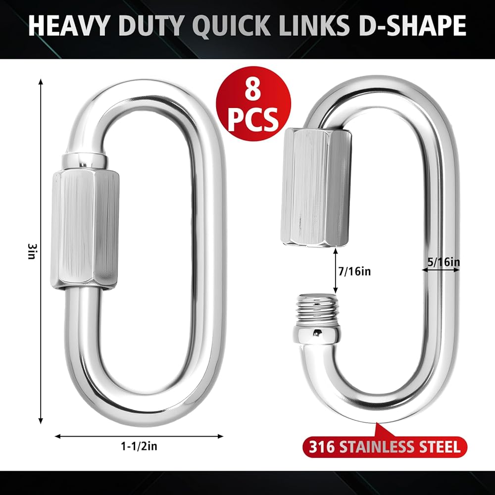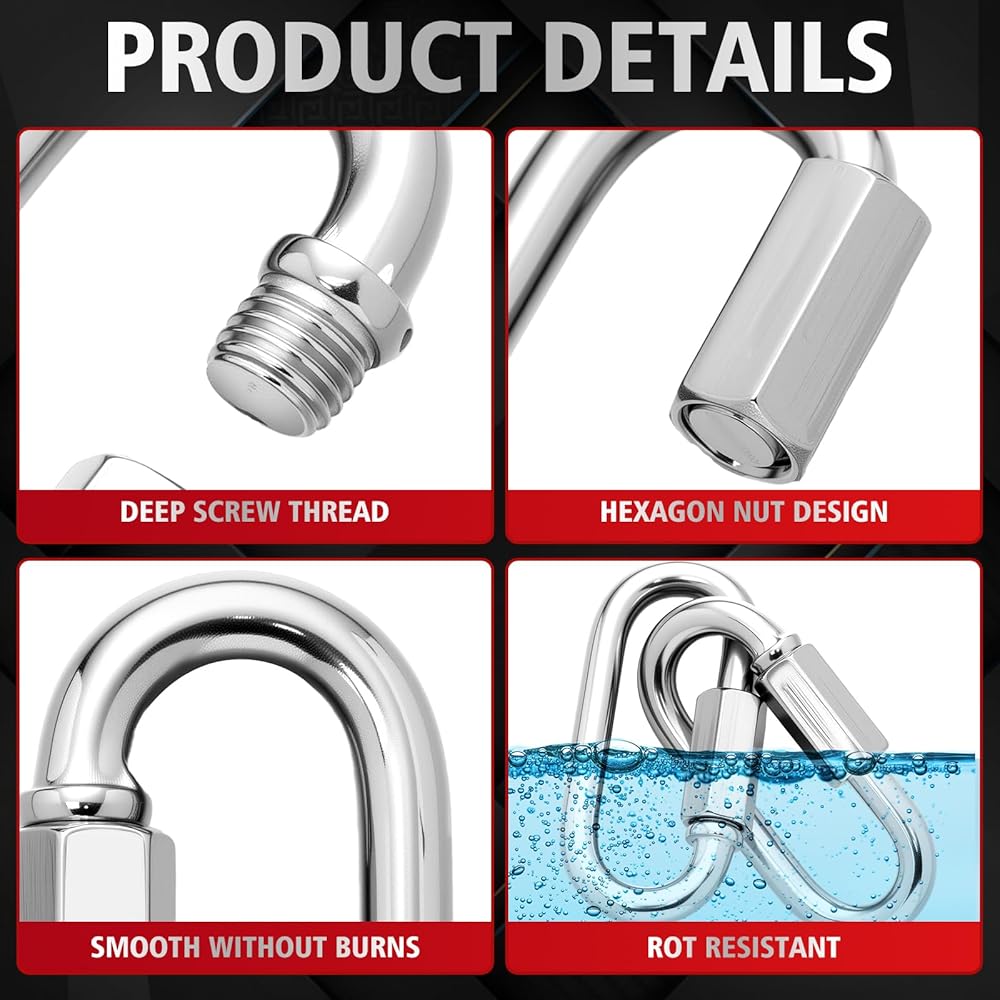Designed with a reliable D-shape locking feature, these quick links provide a secure and stable connection that helps prevent accidental opening, ensuring safety during towing, rigging, or supporting loads.