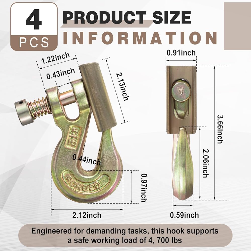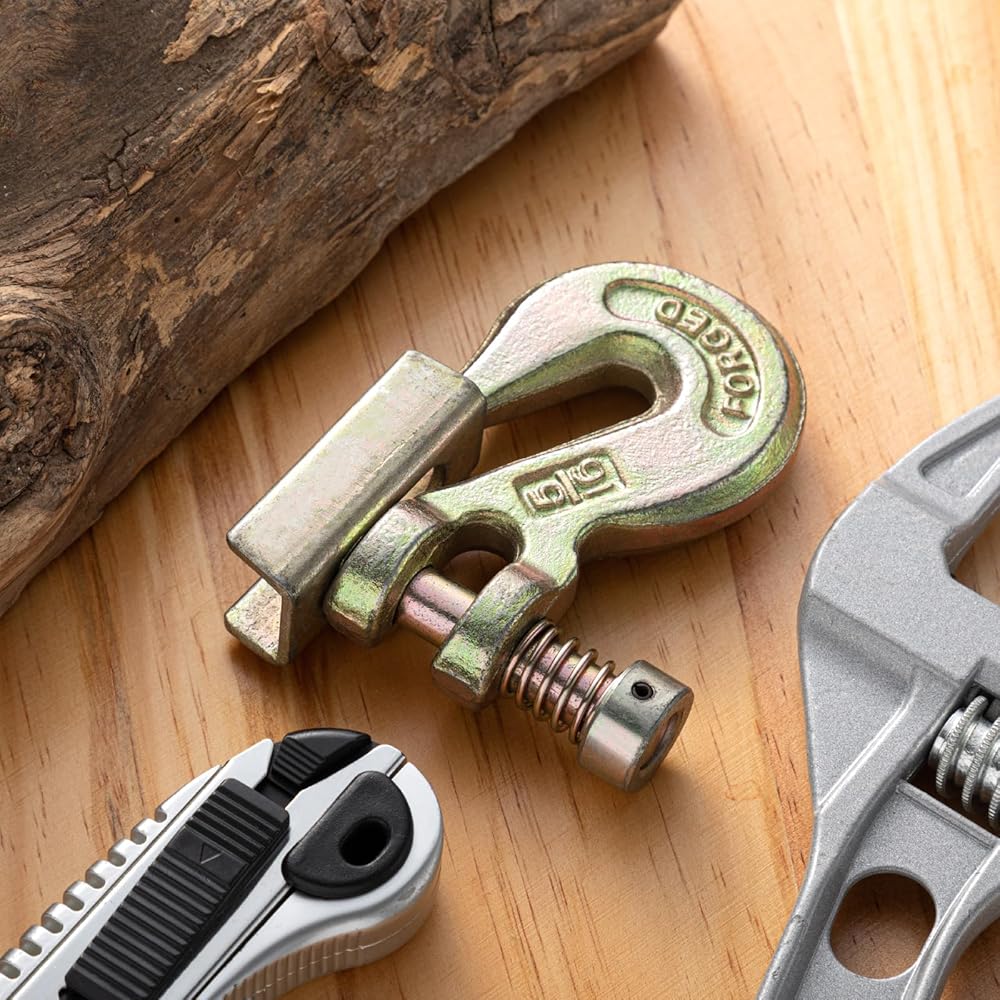 The hook is designed for straightforward operation. The pin lock is easy to engage and disengage, and the spring latch facilitates smooth handling. Its functional design reduces effort and time during setup and adjustment.
