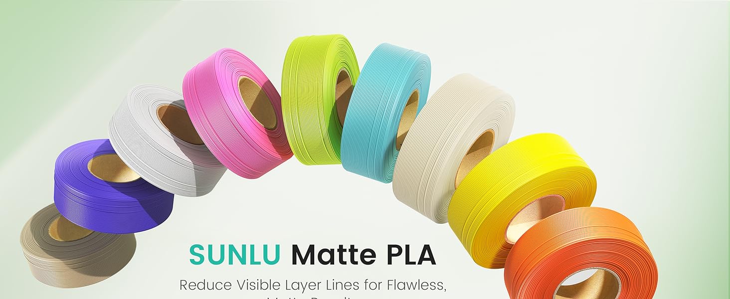 Elegant Matte Finish – Reduced Layer Lines: SUNLU Matte PLA filament delivers a refined, non-glossy surface that helps reduce visible layer lines. The result is a smooth, professional appearance—perfect for design models, architectural work, and premium display pieces.
